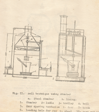 26. The melting of cast iron under a layer of Magnesium oxide or dolomite at 1700°C (Ref. 19).