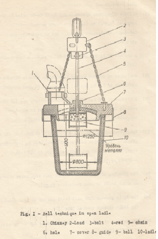 1. The introduction of Mg or its alloys by a bell in ladles: These ladles may be open Fig. I (Ref. 31) or existing in a chamber Fig. II (Ref. 8).