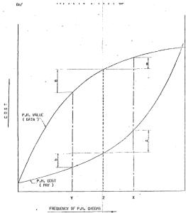 It is evident that the difference between the two curves is a profit, taking the point of the maximum difference which is the point of maximum profit at Z frequency of preventive maintenance checks.